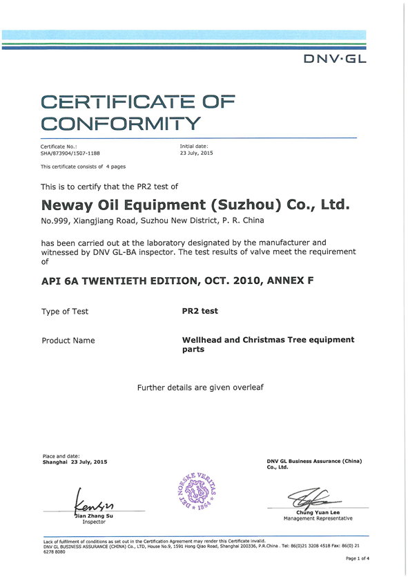 油管頭PR2F 證書