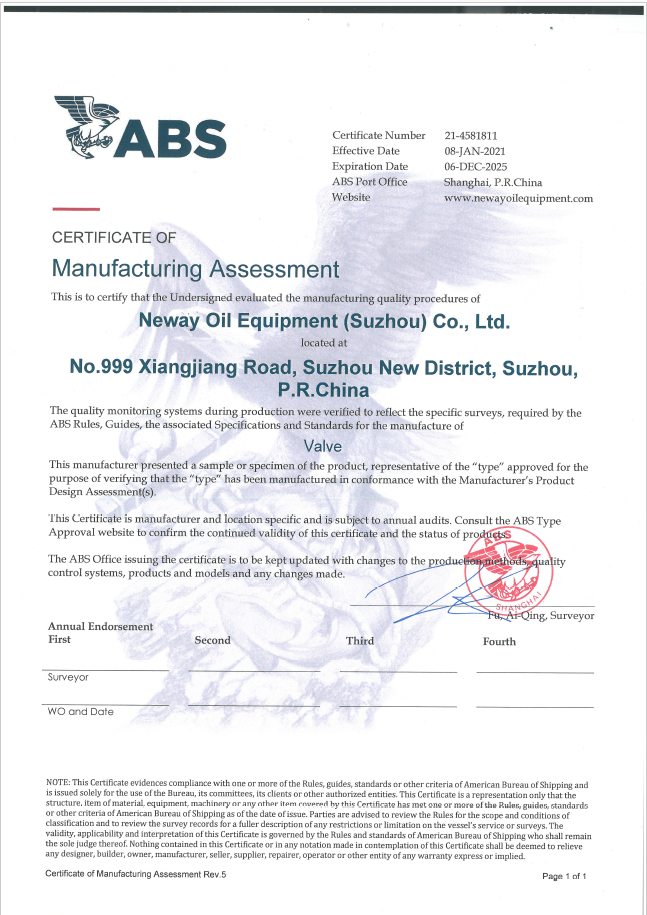 ABS工廠認(rèn)可 證書